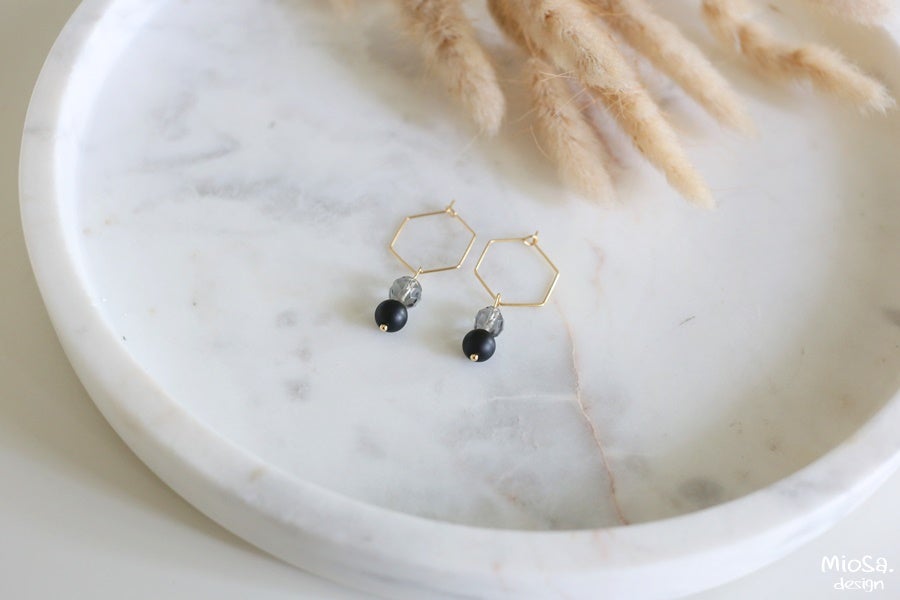 Korvakorurengas muodostaa korvakoruihin kauniin yksityiskohdan kuusikulmaisella muodollaan.